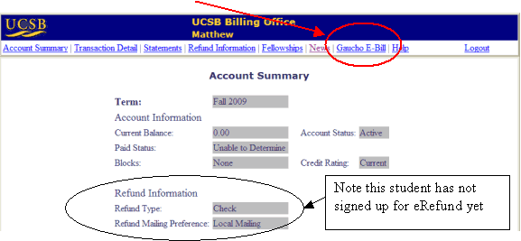 Select the link to “Gaucho E-Bill” at the top right corner of the screen that loads.